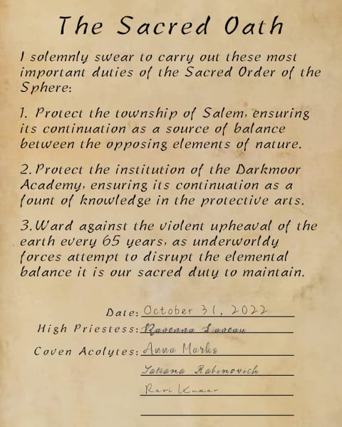 So you're apparently helping a witch cast a spell to free some student witches from a spell they accidentally cast on themselves. Could this day get any weirder! The only thing you can do is what you do best - examine the evidence, look for clues, and solve the mystery.
