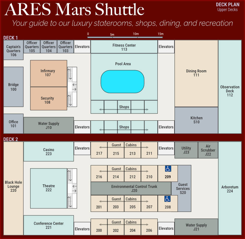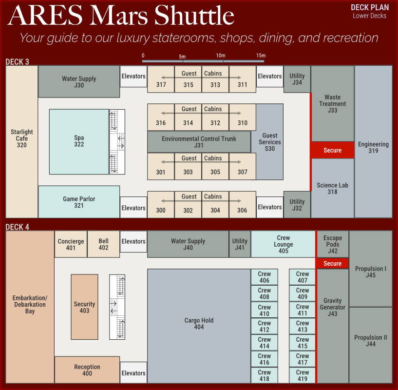 You wonder about this "source". Are they on the shuttle now? Do they know their life is in danger? You really don't have time to worry about that though, because you have no idea where anything is on this space boat! You pick up the welcome brochure in your stateroom, hoping it will help.