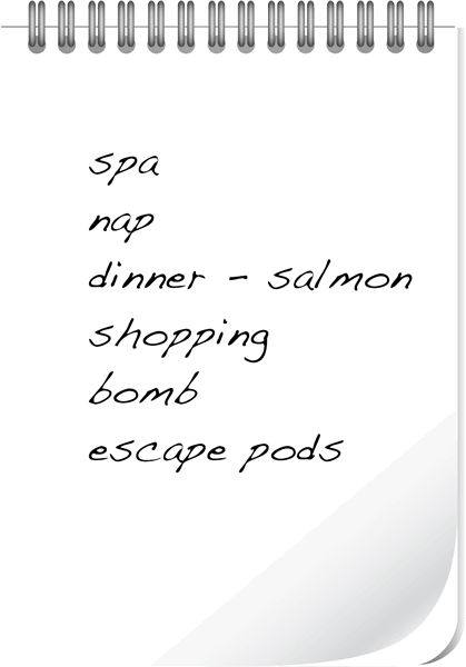 You're too late! The bomb has been removed from the case and is being placed somewhere on the ship, while you are left with nothing but a folder containing some documents. It is imperative that you use all available information to figure out where on this shuttle they might want to place an explosive device.