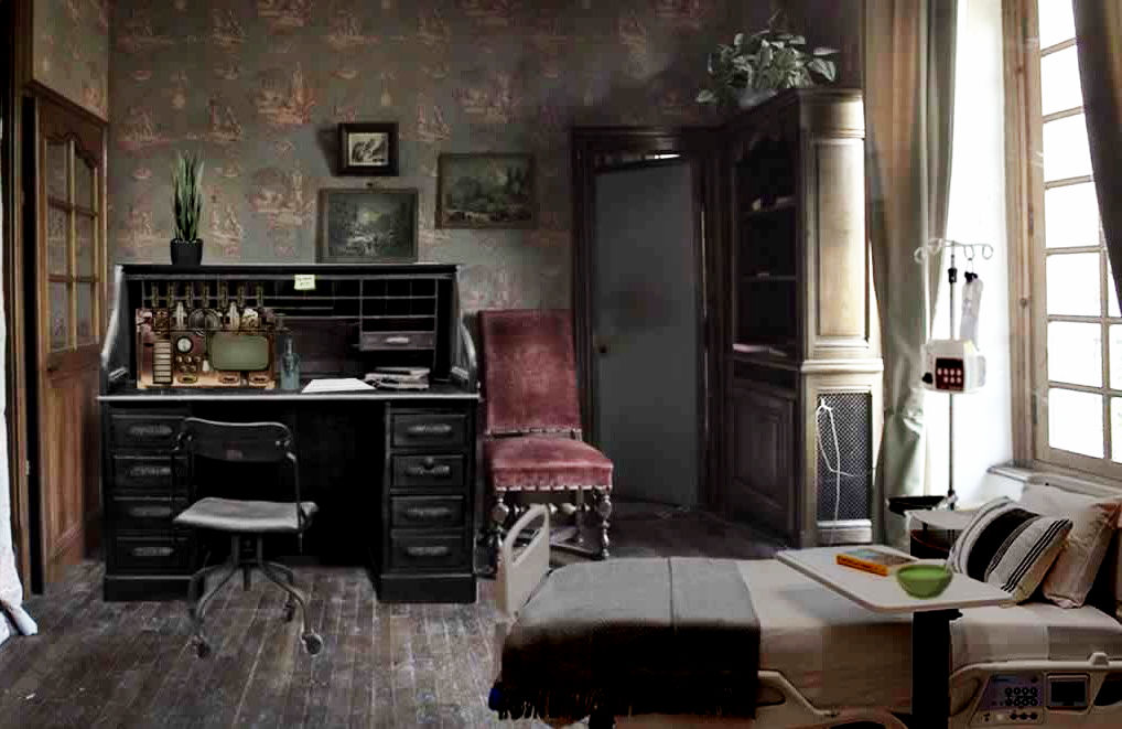 The bedroom is dominated by the hospital bed, but there is a messy desk in the corner with some weird notes, a book, and some home-made contraption that appears to mix and dispense liquids. That must be where Roy Hickey prepared the medication in the vial found by his client's bed. You need to find out if the medication contained enough alkyloids to have caused Mr. Lyttlewhakker's death. With an inconclusive lab report, you hope that the contraption on the desk can help you answer that question.